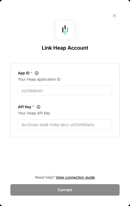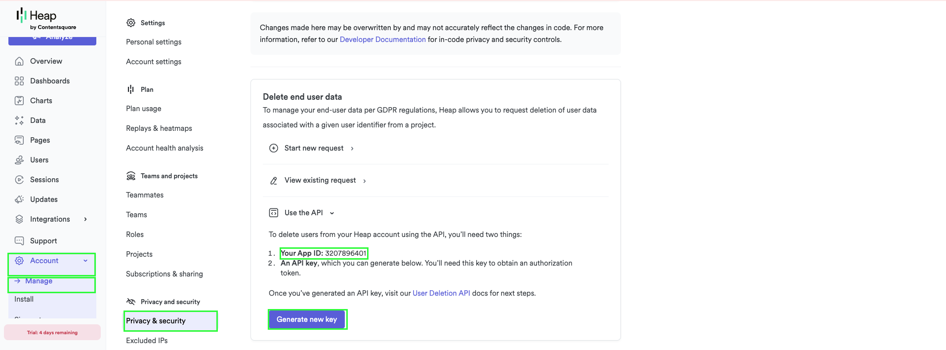 • You must have an account with Heap and admin permissions to generate and retrieve the API key.