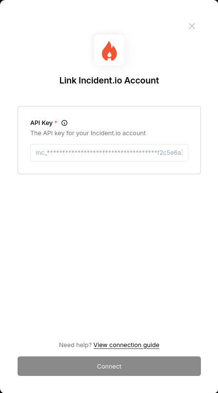 1. API Key - A key that grants Nango permission to interact with the Incident.io API.