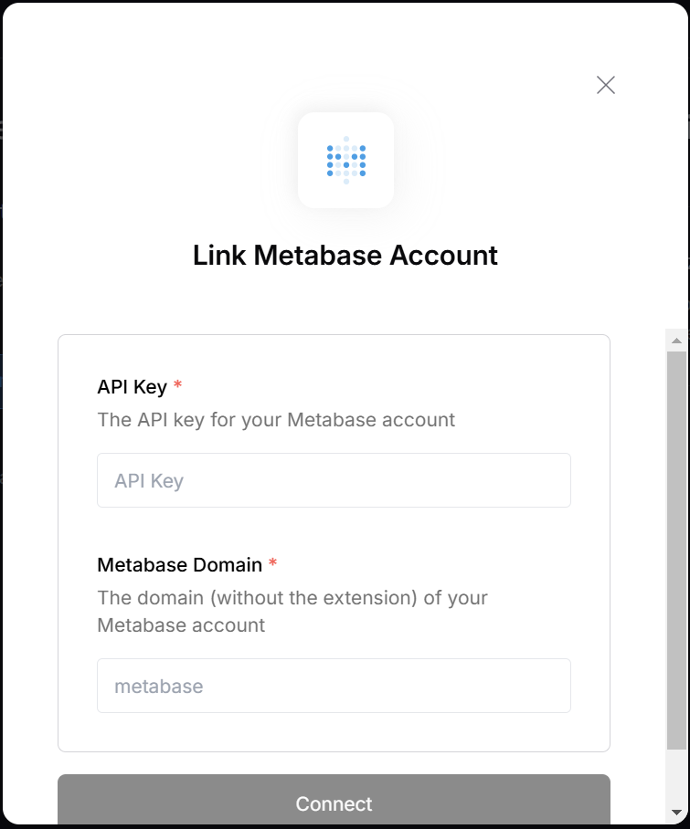 2. Metabase Domain - The domain (without the extension) of your Metabase account.