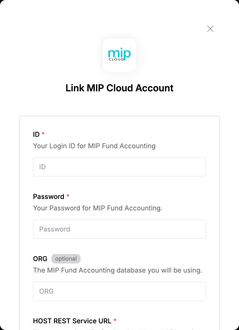 - YOUR_ID - Your login ID for MIP Fund Accounting.
