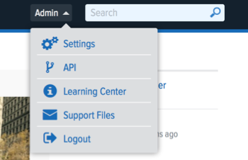 - Click the Admin dropdown and select API.