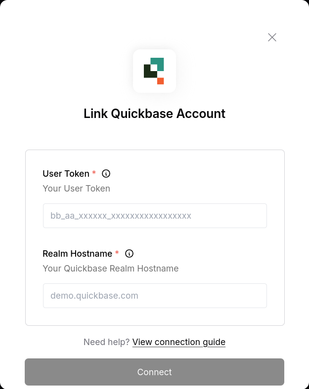 2. User Token - A token that grants Nango permission to interact with Quickbase’s APIs resources and services.