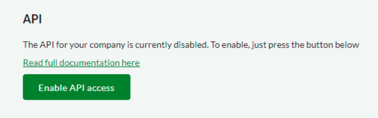 - Click ENABLE API ACCESS to activate API access and generate your unique API key