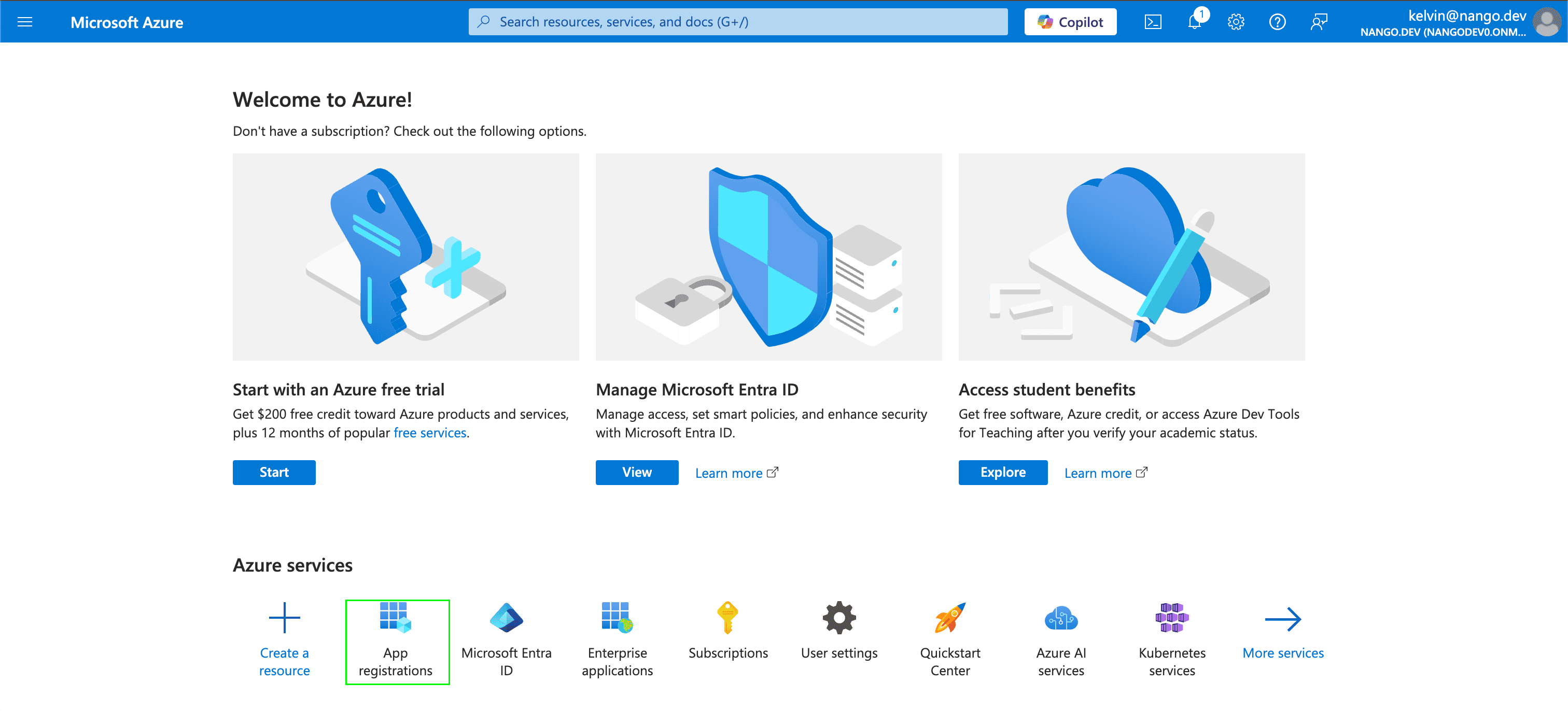 - Select App registrations.