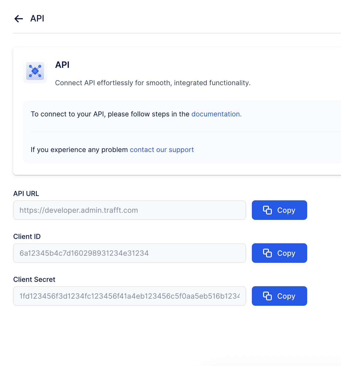3. Client Secret - A unique string that enables the client application to access Trafft