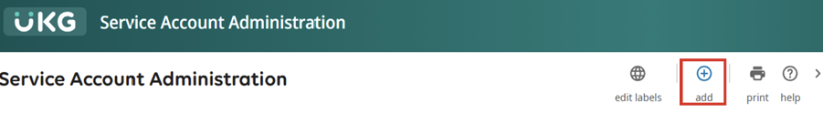 1. On the Service Account Administration page, click the Add (+) button located at the top right of the page
