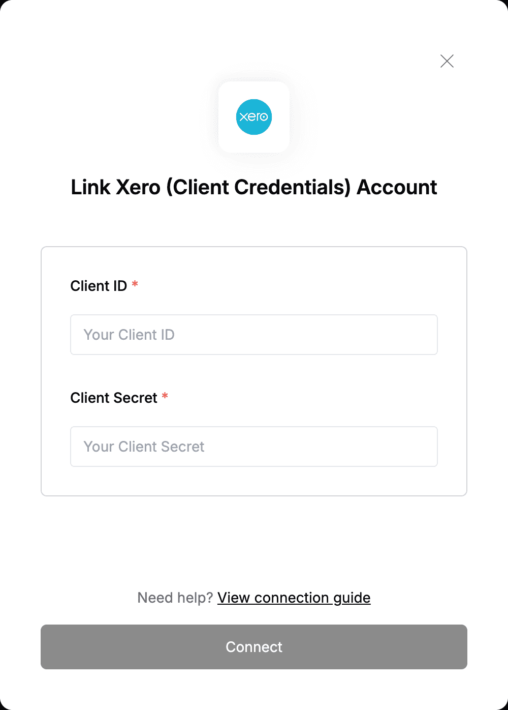 Step 2: Enter credentials in the Connect UI