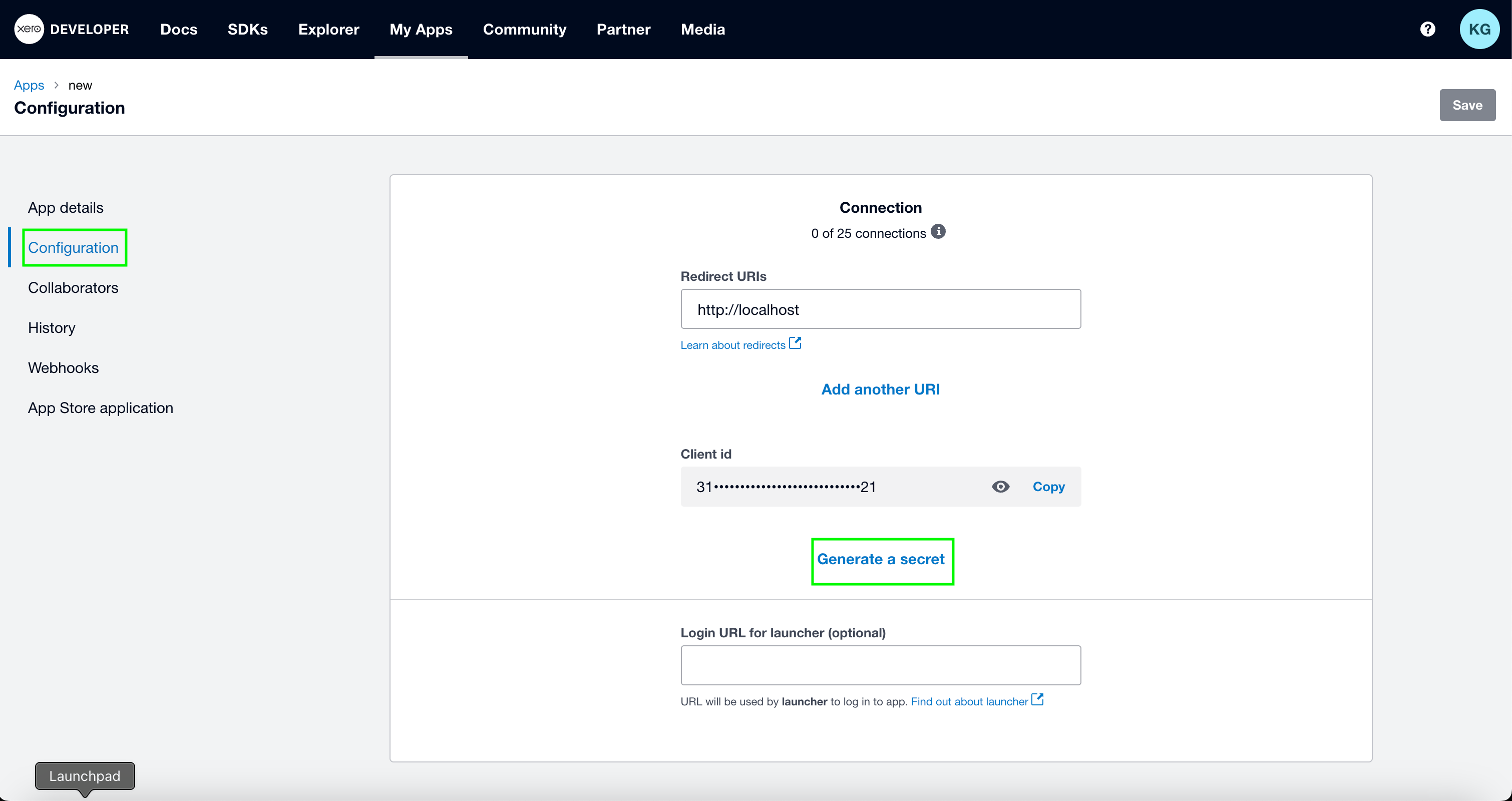 1. Log in to your Xero My Apps developer console.