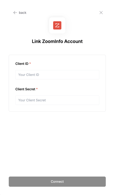 • Client ID: Your ZoomInfo Client ID